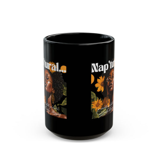 Natural Beauty Black Mug - Inspirational Coffee Cup for Self-Care Enthusiasts