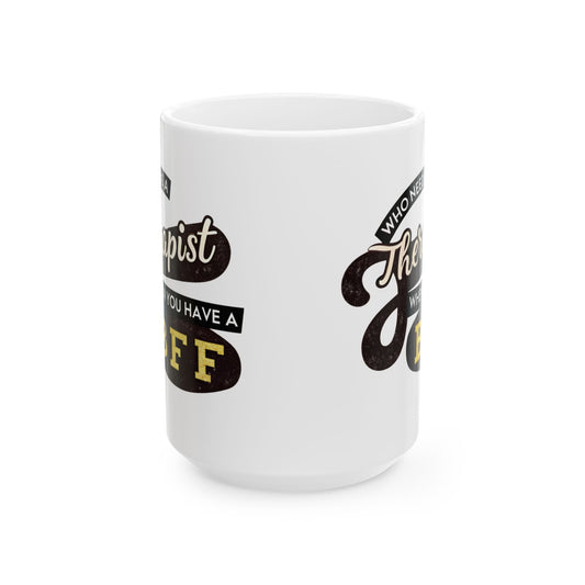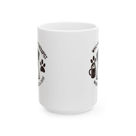 Dog Lover's Ceramic Mug - "Who Needs a Therapist When You Have a Dog" - 11oz & 15oz