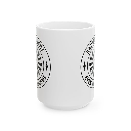 Inspirational Ceramic Mug - Radiate Light Even in Shadows (11oz & 15oz)