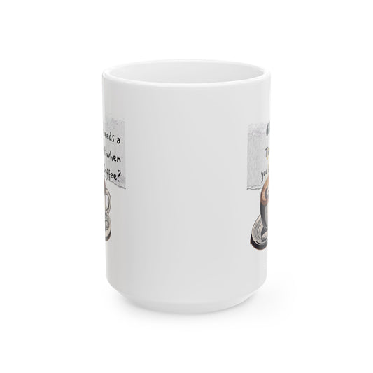 Funny Ceramic Coffee Mug - "Who Needs a Therapist When You Have Coffee?" - Perfect Gift for Coffee Lovers